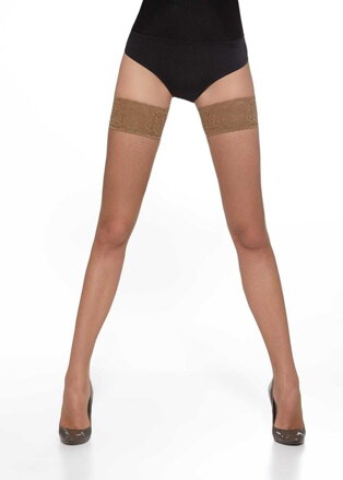 Sieťované samodržky LUCREZIA sú vyrobené z kvalitných materiálov, vďaka čomu sú veľmi jemné a trvácne. Ozdobené sú širokou čipkou, ktorá zvýrazní Vaše nohy a dodá Vám pôvab. Čipka má z vnútornej strany silikónové pásiky, ktoré sa z nohy nekĺžu. Pančuchy sú vhodné na každodenné nosenie alebo ich skombinujte s podväzkovým pásom a potešte svojho partnera.