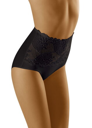 Dámske nohavičky KAJA vďaka svojmu vyššiemu pásu jemne zoštíhľujú postavu. Prednú časť tvorí ažúrová čipka a špeciálny tyl s tvarovacím efektom. Zadná časť je jednoduchá a hladká.
